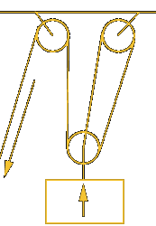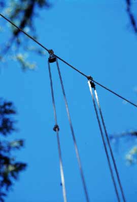 Top pulleys of the tackle showing the all important stop knot.