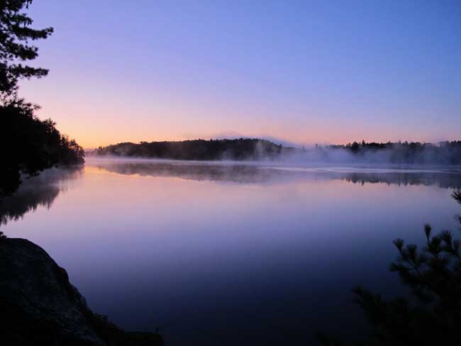 Morning mist on Cirrus Lake, Quetico.