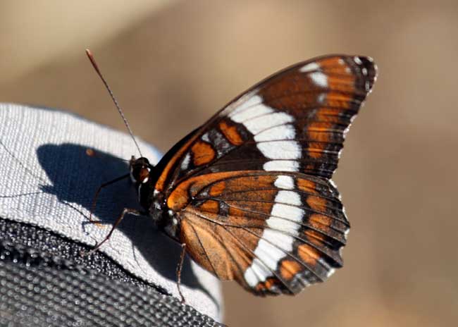 White Admiral butterfly on personal pack, Kawishiwi Lake, September 10, 2011