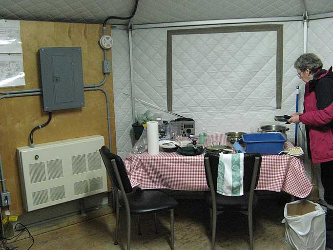 Quetico Park yurt - table and chairs in front of velcro-sealed window.